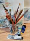A partir d’une toile ou d’une feuille blanche, je laisse le hasard et l’énergie de l’instant guider mes pinceaux et mes couteaux. Puis j’utilise les formes et les contrastes qui émergent de cette harmonie (ou de ce chaos !) pour organiser une dynamique, donner force ou subtilité aux couleurs et proposer un sens à la toile.